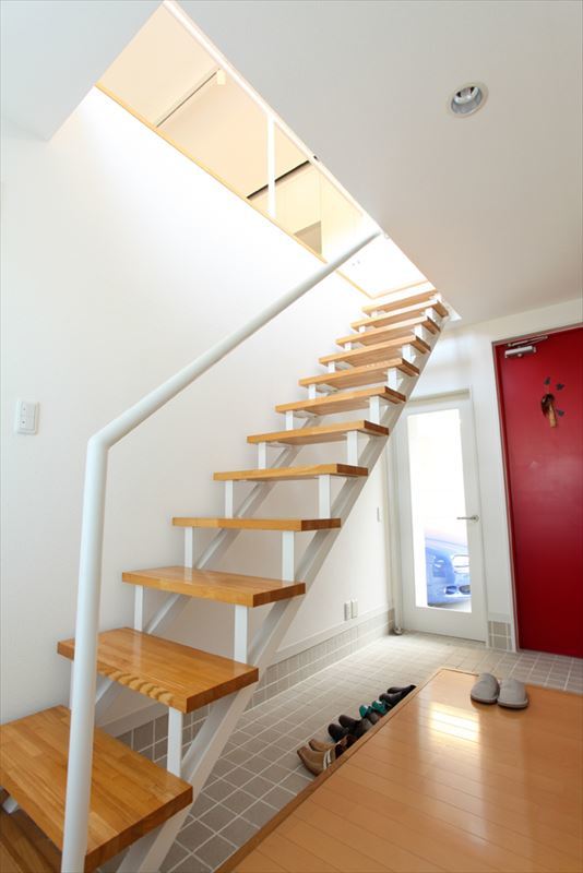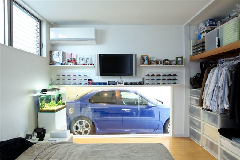 洗練されたフォルムにオフホワイトで統一された美しい居住空間の家です。限られた敷地でも、立地条件によっては窓のレイアウトによって、広さを感じさせる典型的な事例です。2Fリビングからは、外の風景を暮らしの一部として楽しむことができます。1Fは、ビルトインガレージが寝室から眺めることのできるのもご主人のこだわりです。