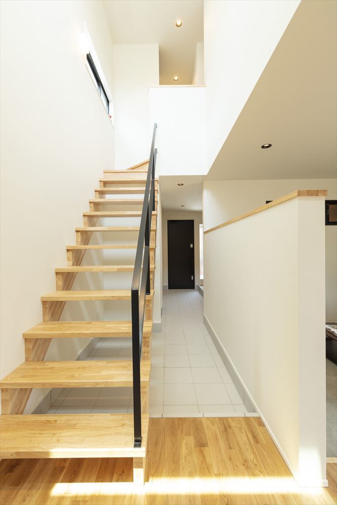 玄関の広さ、スケルトン階段、リビングの開放感です。