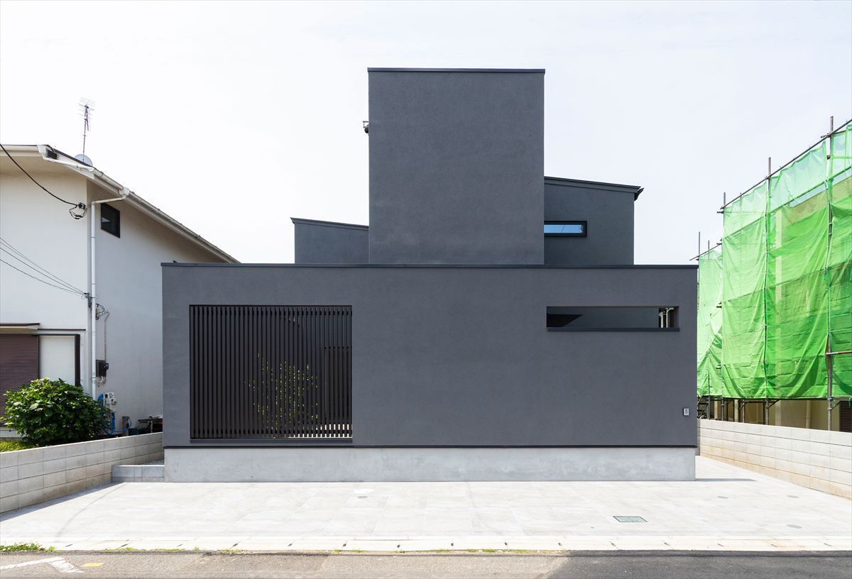 外観は、通りからの視線をシャットアウトした、窓のほぼ無い凸型のファサードが特徴です。