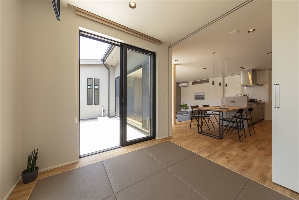 建物の中心に配置された中庭は、外部からの目線を隠し、プライバシーを確保したインナーテラスに。