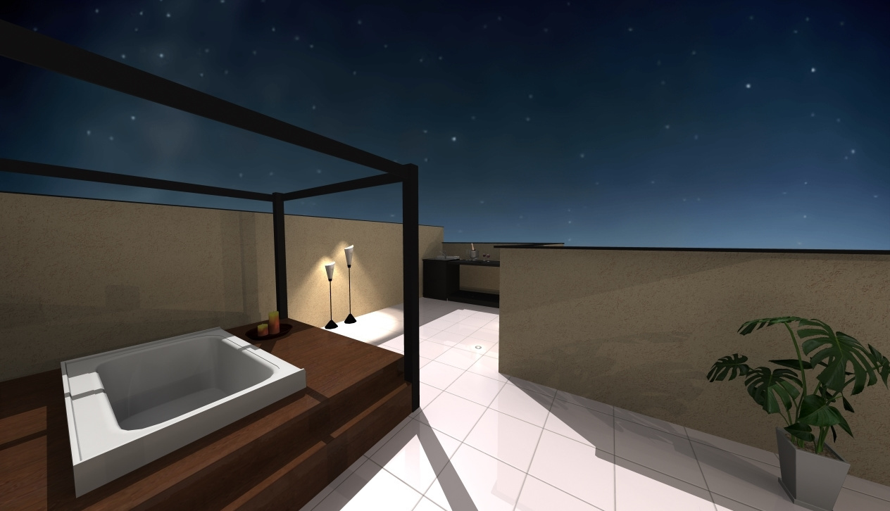 そして、屋上には屋上リビングがあり、アウトドア家具やジャグジーを配置し、非日常が味わえるリゾート空間に個性が違う3つのリビングが点在する、遊び心が満載なお家が完成いたしました。