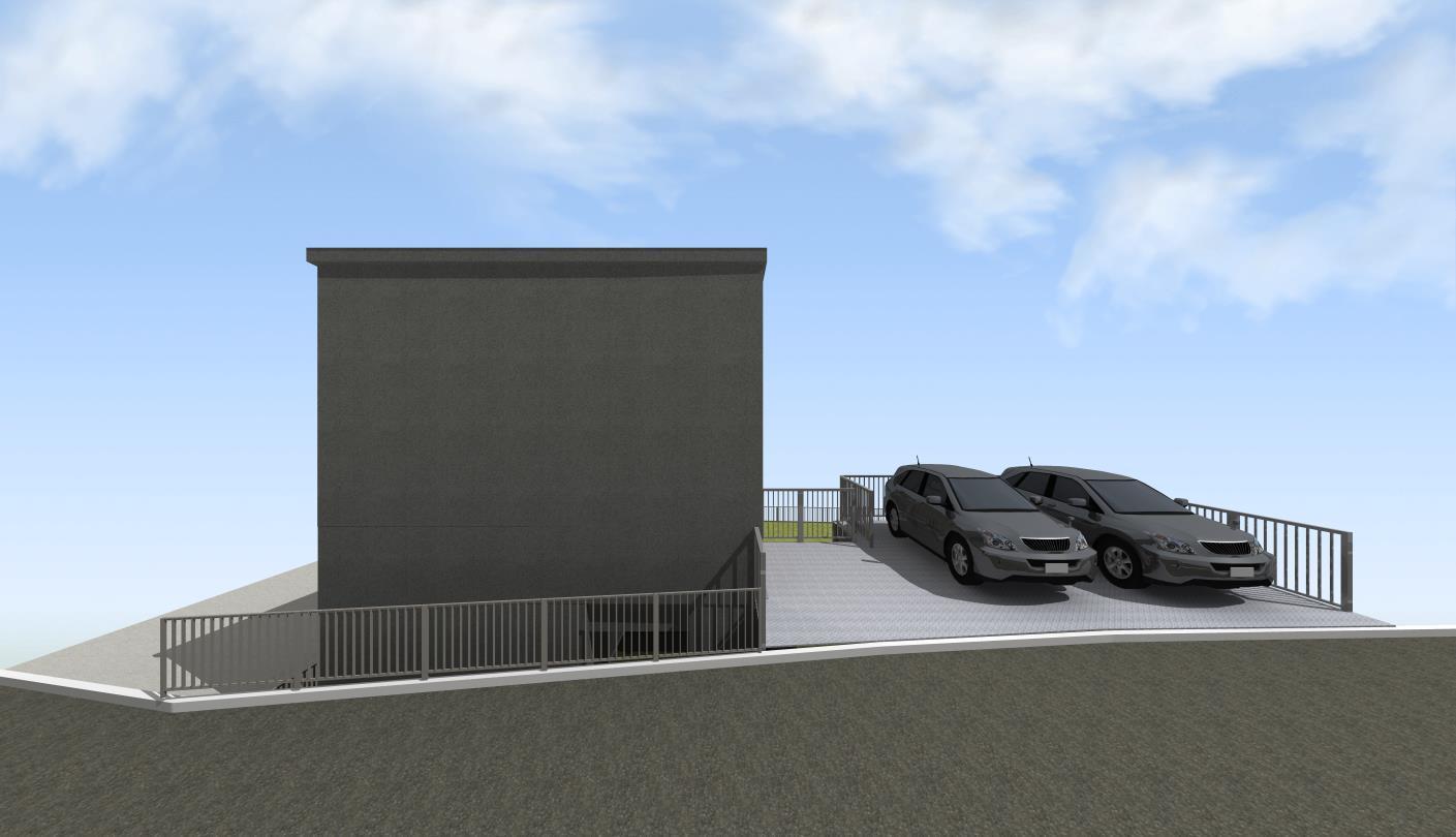 道路から下がった敷地を最大限に活かして設計した建物です。