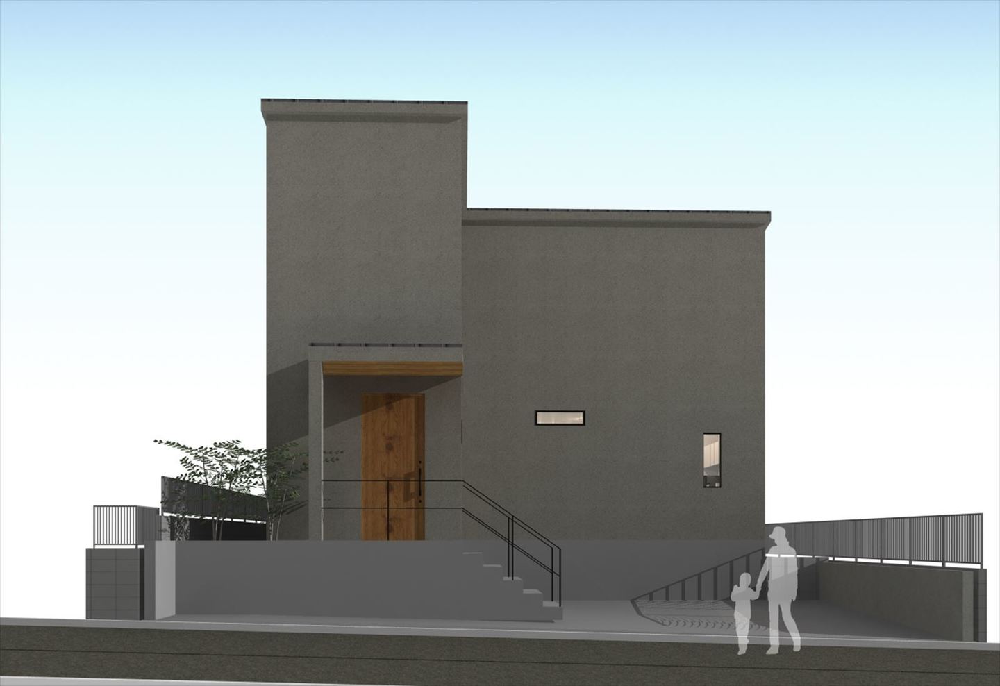 北道路に面した敷地に建つモダンハウス。