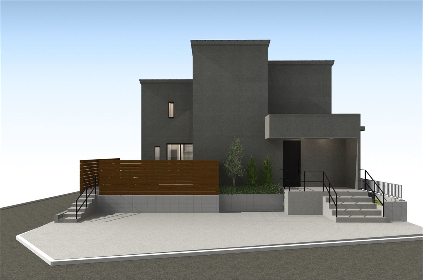 今回は高低差がある土地をうまく活用し、外部からの視線を遮りながらも開放性を保ったお庭を提案しました。