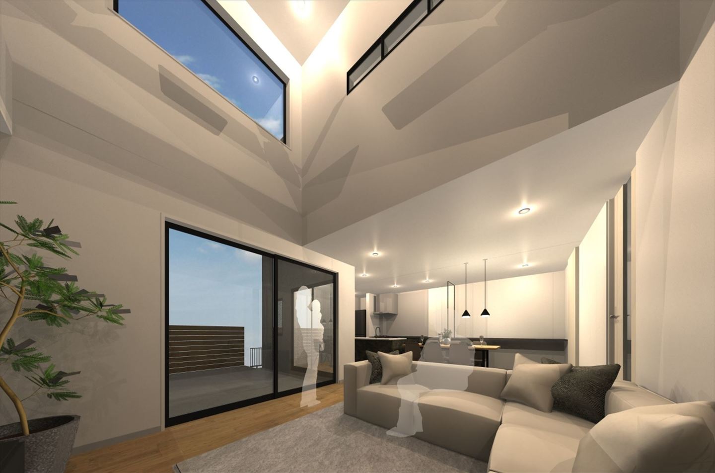 15帖の広々としたコンクリートデッキでは、お好きなアウトドア家具を置いたり、ご友人を招いて会食をしたり、アウトドアリビングとして様々な楽しみ方ができます。